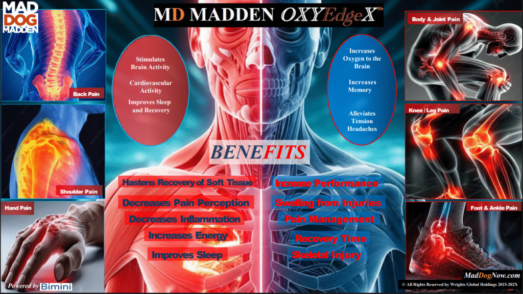 At the center of this movement is Mad Dog Madden, whose relentless focus on athletes, veterans, and human performance helped shape OxyEdge X¹⁰ into a product that speaks with results, not hype. Mad Dog isn’t selling motivation—he’s delivering a tool. A tool being used by current athletes who understand that recovery is the real competitive advantage. A tool supporting veterans who deserve restoration, not temporary relief. A tool helping seniors maintain strength and independence. And a tool that health hackers and performance optimizers immediately recognize as a missing link between biology and technology.